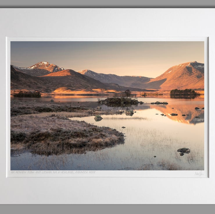 Image: "Dawn at Rannoch Moor" - Am Monadh Dubh and Lochan na h-Achlaise at sunrise, 31 December 2019 - by Scotland photographer Neil Barr