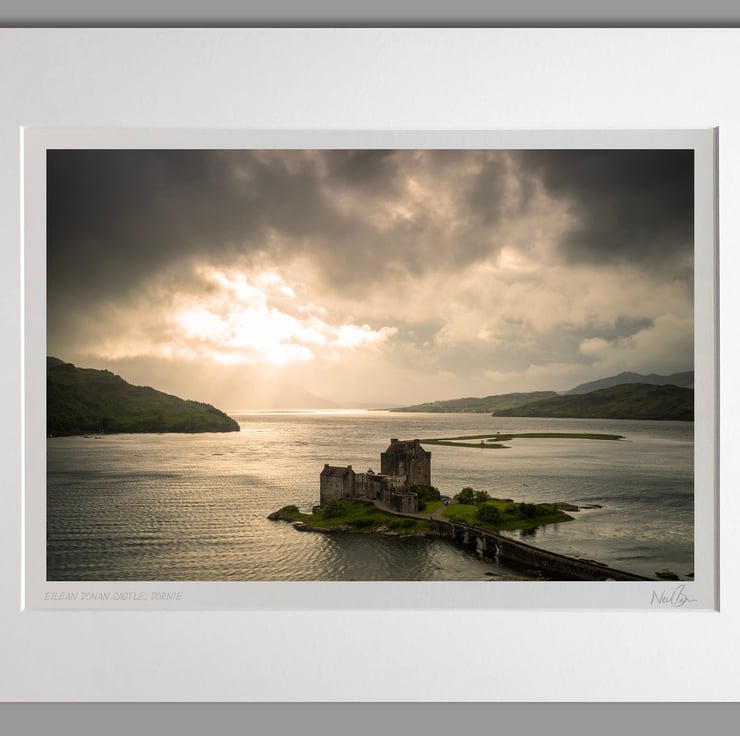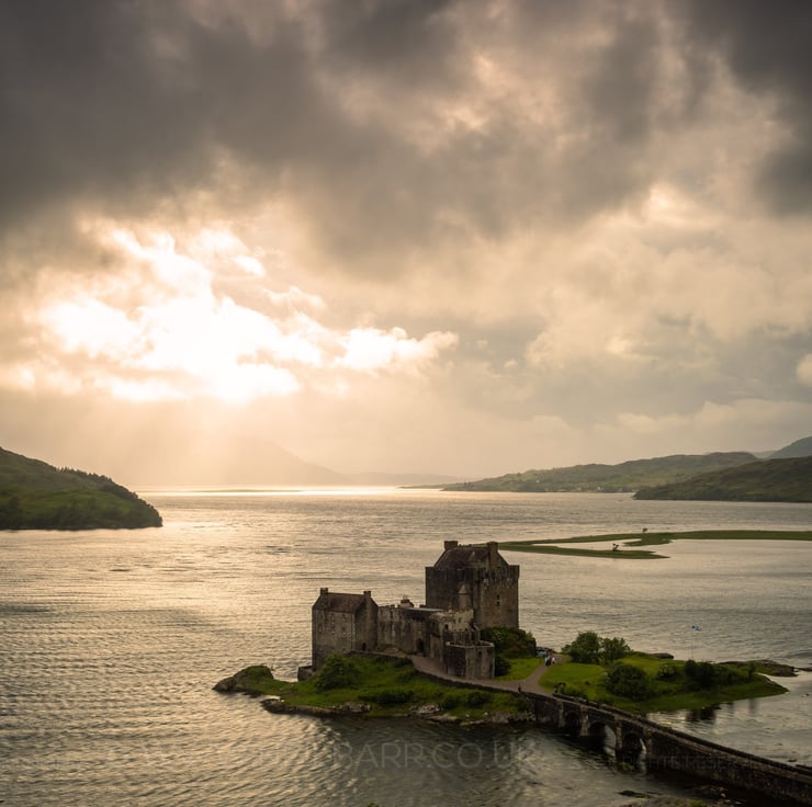 Image: "Eilean Donan Castle" - Eilean Donan Castle at Dornie, looking down Loch Alsh towards the Isle of Skye, 30 June 2019 - by Scotland photographer Neil Barr