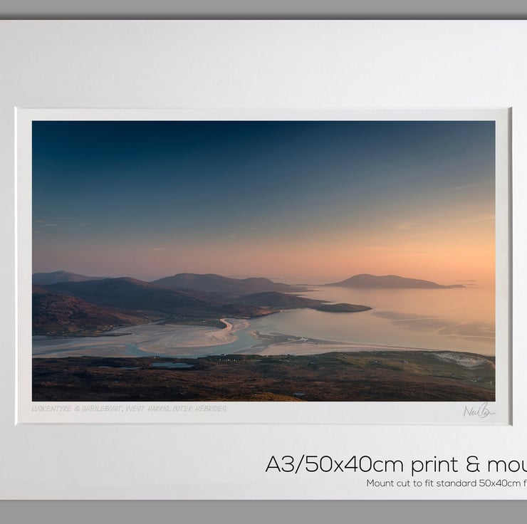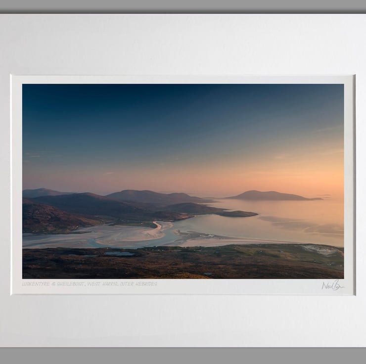 Image: "West Harris" - Luskentyre and Sheileboist all the way to Ceapabhal from the summit of Beinn Dhubh on West Harris, Outer Hebrides at sunset., 2 May 2017 - by Scotland photographer Neil Barr