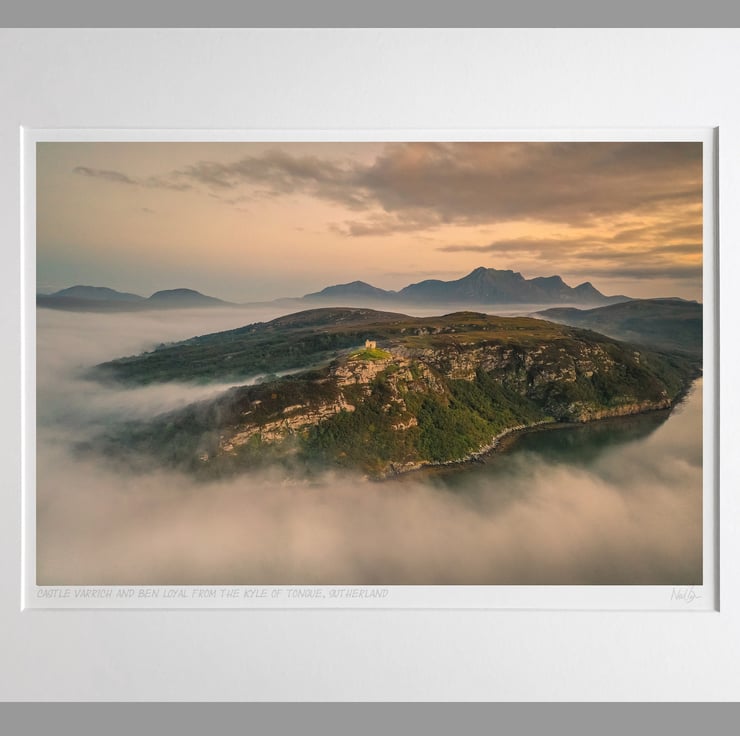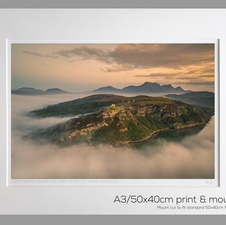 Image: "Castle Varrich" - Castle Varrich and Ben Loyal from the Kyle of Tongue at sunset, 19 September 2020 - by Scotland photographer Neil Barr