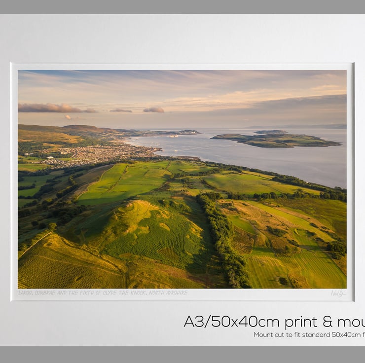 Image: "Largs from The Knock" - Largs, Cumbrae and the Firth of Clyde at sunset from above The Knock, North Ayrshire, 10 August 2021 - by Scotland photographer Neil Barr