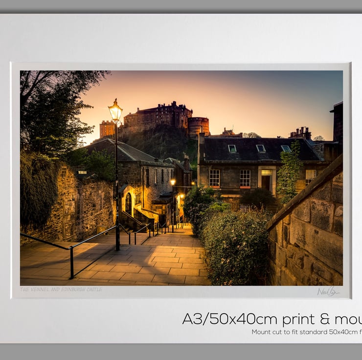 The Vennel and Edinburgh Castle Scotland - A3 (50x40cm) Unframed Print