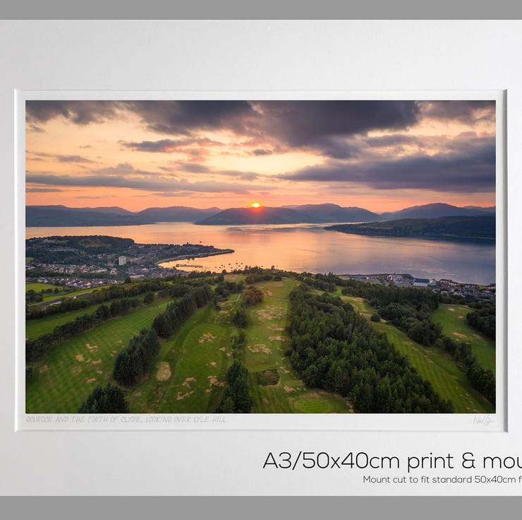 Image: "Firth of Clyde" - Gourock and the Firth of Clyde, looking over Lyle Hill and across to Argyll at sunset, 25 July 2021 - by Scotland photographer Neil Barr