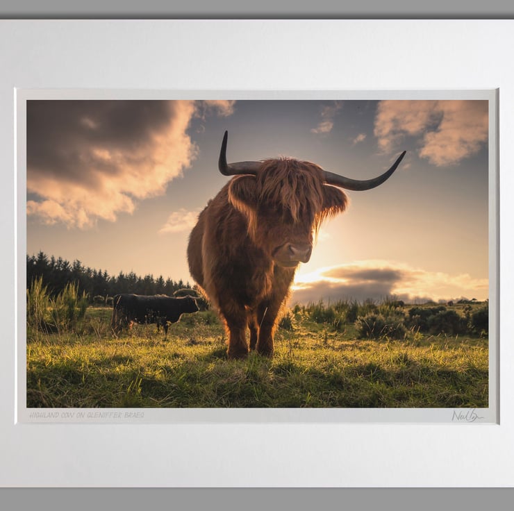 Image: "Heilan Coo" - A Highland Cow on Gleniffer Braes near sunset, 20 October 2019 - by Scotland photographer Neil Barr