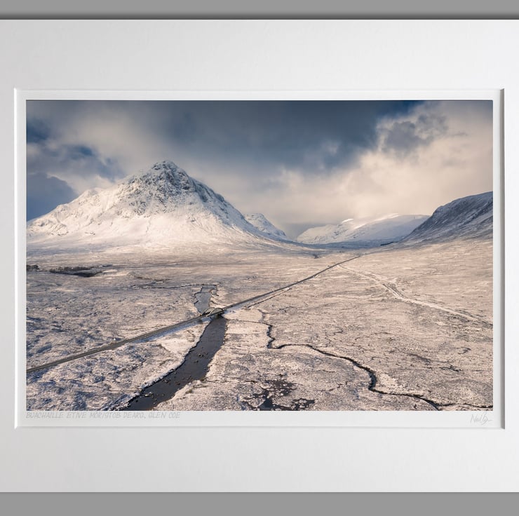 Image: "Buachaille Etive Mor" - Buachaille Etive Mor/Stob Dearg, looking down Glen Coe, 26 February 2020 - by Scotland photographer Neil Barr