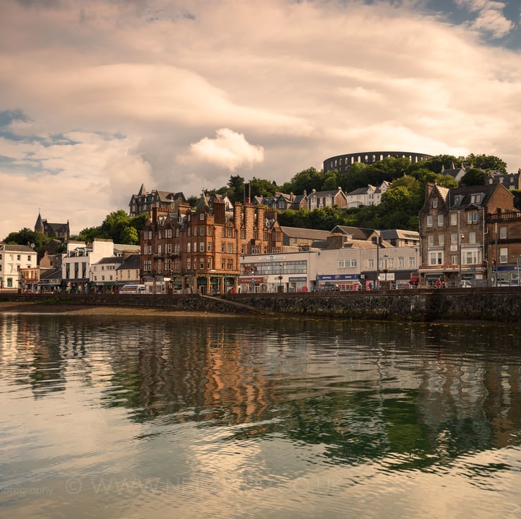 Image: "Oban" - McCaig's Tower above Oban and Oban Bay on a sunny morning. 16 June 2019 - by Scotland photographer Neil Barr