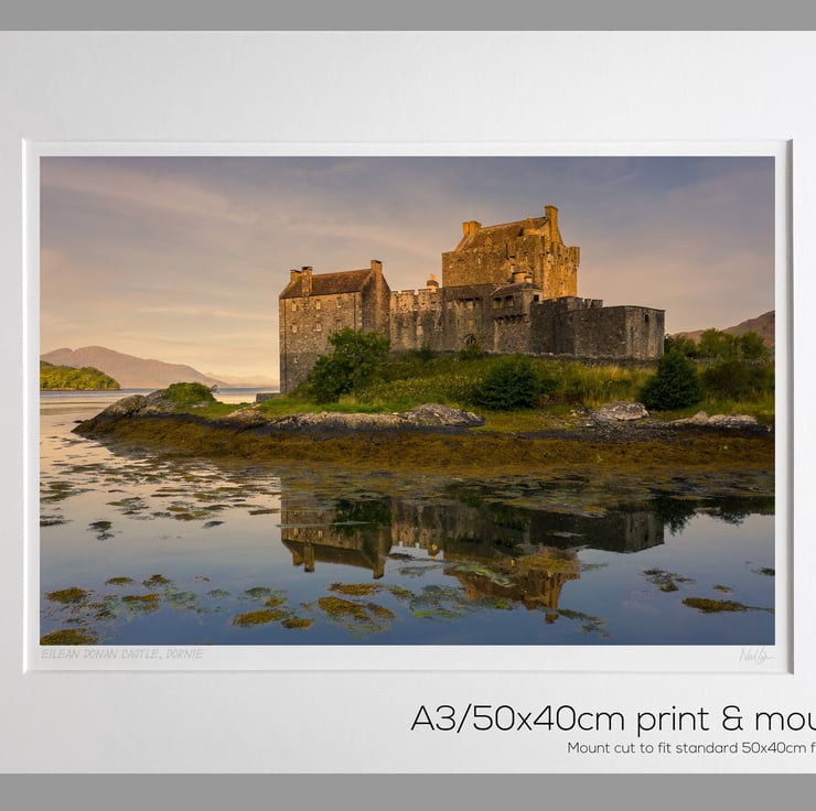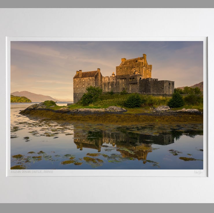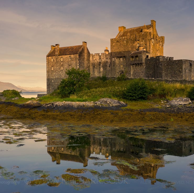 Image: "Eilean Donan Castle" - Eilean Donan Castle at Dornie as the morning sun rises, 27 August 2021 - by Scotland photographer Neil Barr