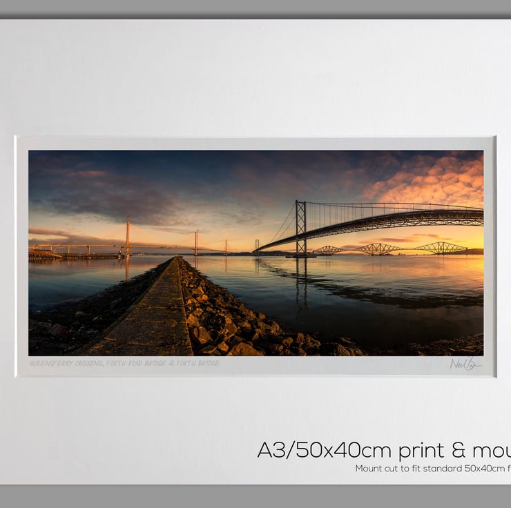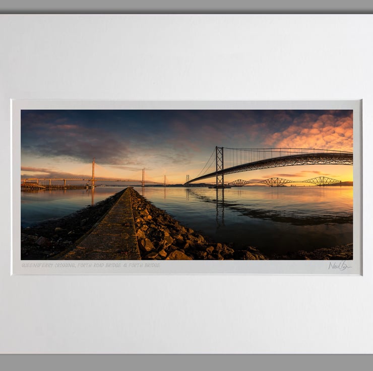Image: "The Three Bridges at Dawn" - The Queensferry Crossing, Forth Road Bridge & Forth Bridge across the River Forth from Port Edgar, 7 March 2017 - by Scotland photographer Neil Barr