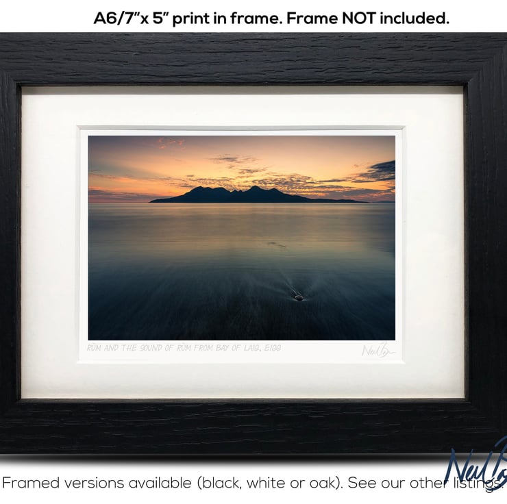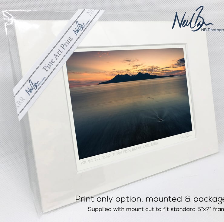 Supplied already mounted, wrapped & with signed labels & certificate, the image is printed on A6 size fine art paper (148x105mm). The actual image size is smaller (see listing images for sizes - image approx. 115x77mm) to allow for the signature & inscription. The 100% acid-free mount is cut to fit standard ready-made frames from high street stores. EXTERNAL mount size is 7"x5". This is the OUTSIDE size of the mount (and thus the size your frame should be).