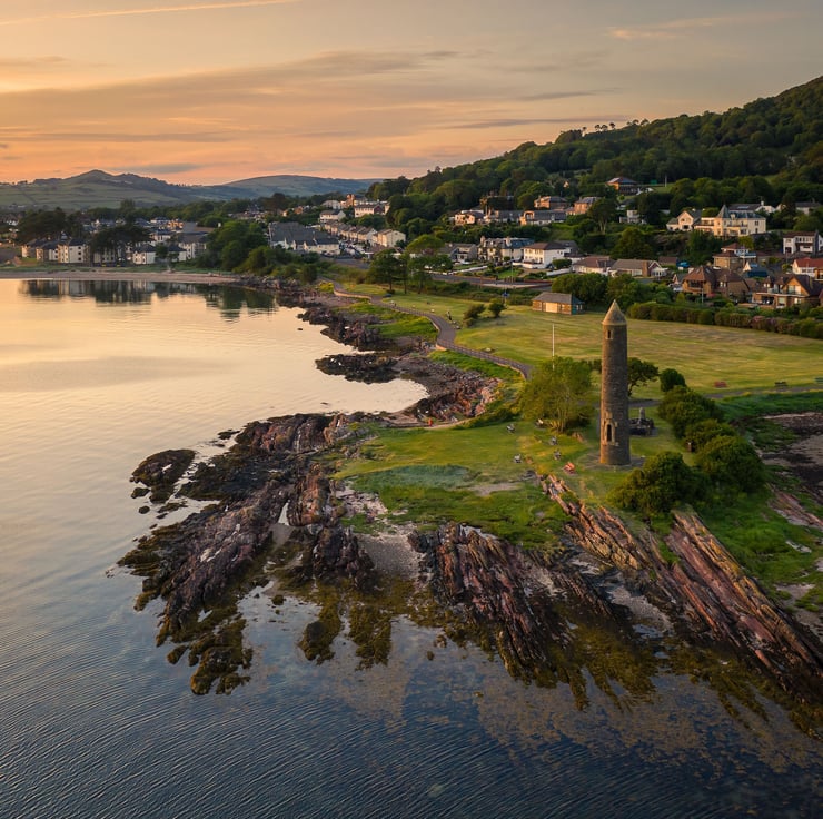 Image: "The Pencil" - The Pencil monument, Largs, Ayrshire at sunset, 14 June 2020 - by award-winning Scotland photographer Neil Barr