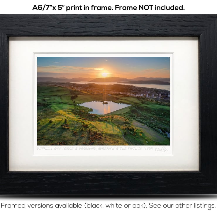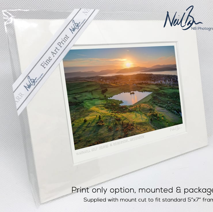 Supplied already mounted, wrapped & with signed labels & certificate, the image is printed on A6 size fine art paper (148x105mm). The actual image size is smaller (see listing images for sizes - image approx. 115x77mm) to allow for the signature & inscription. The 100% acid-free mount is cut to fit standard ready-made frames from high street stores. EXTERNAL mount size is 7"x5". This is the OUTSIDE size of the mount (and thus the size your frame should be).