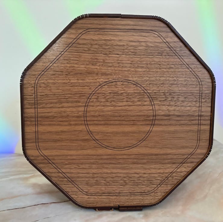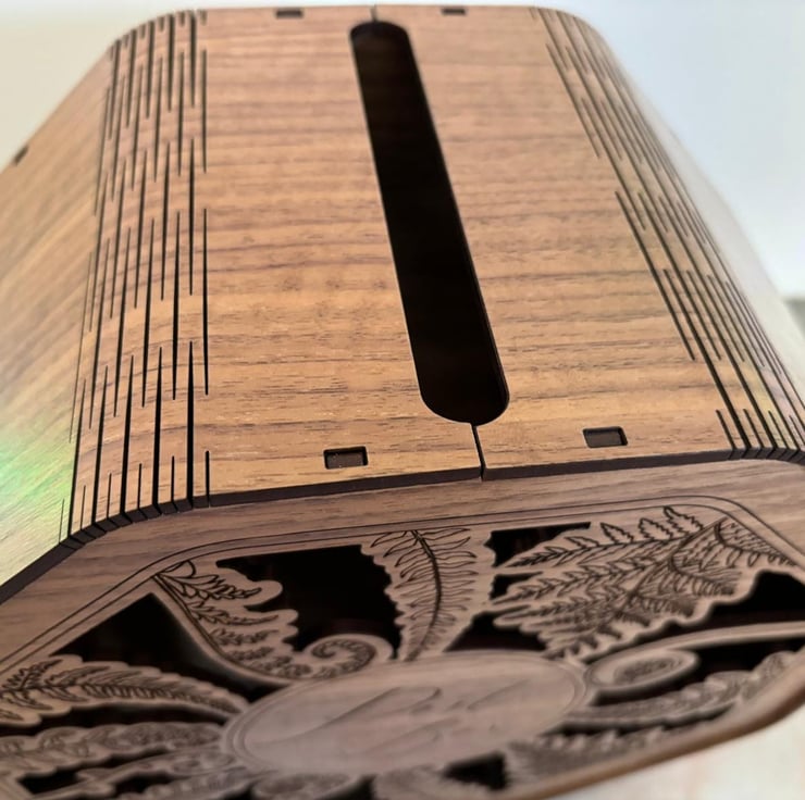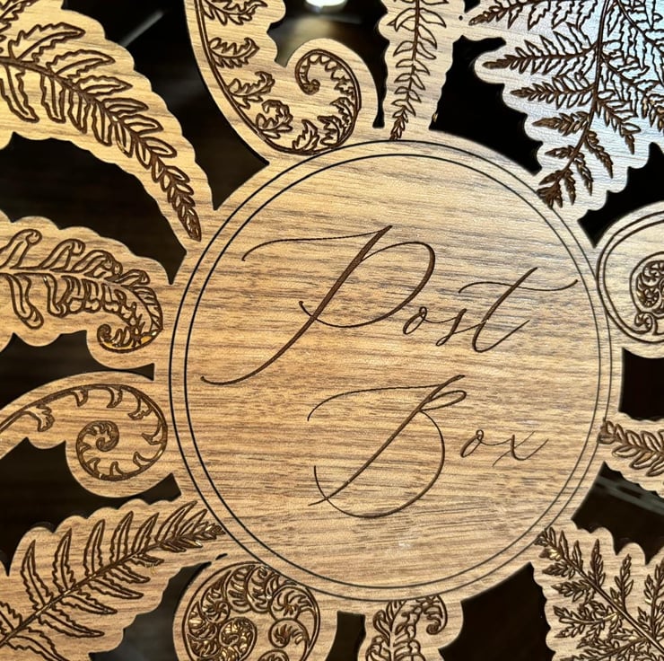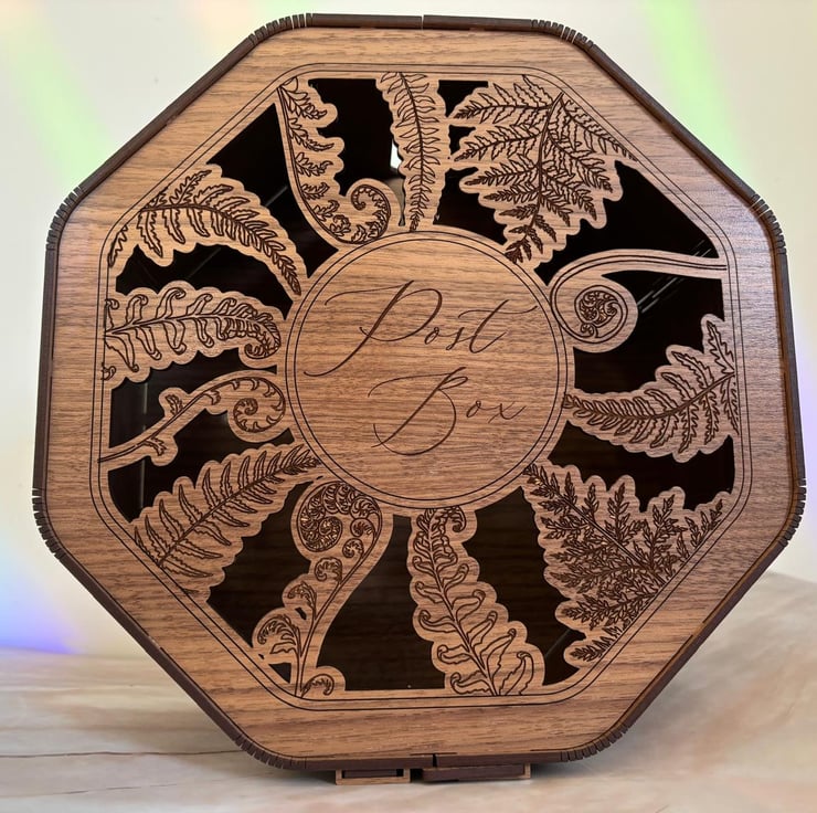 Expertly crafted and personalised, our hexagonal wedding post box is the perfect addition to your special day. With elegant fern designs and spacious interior, collect and store your wedding cards securely in this charming box.