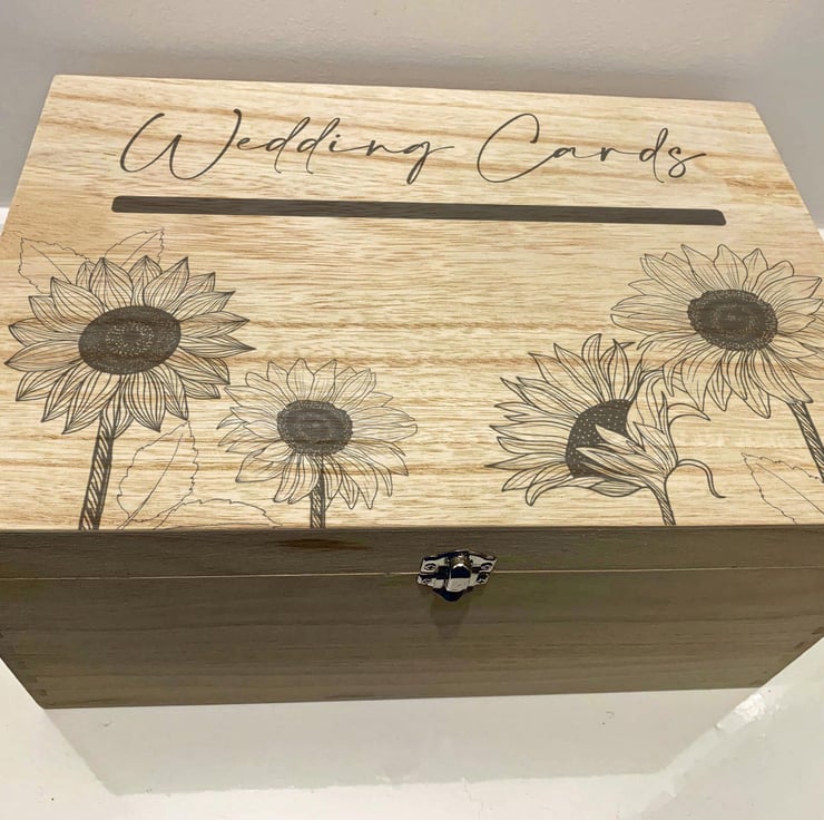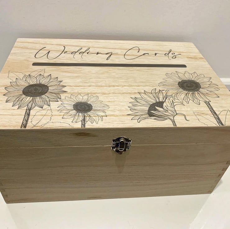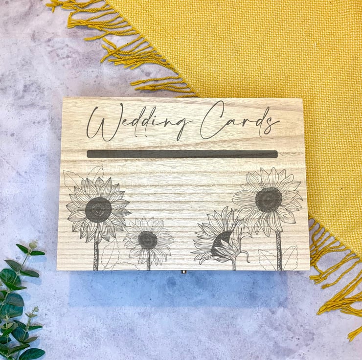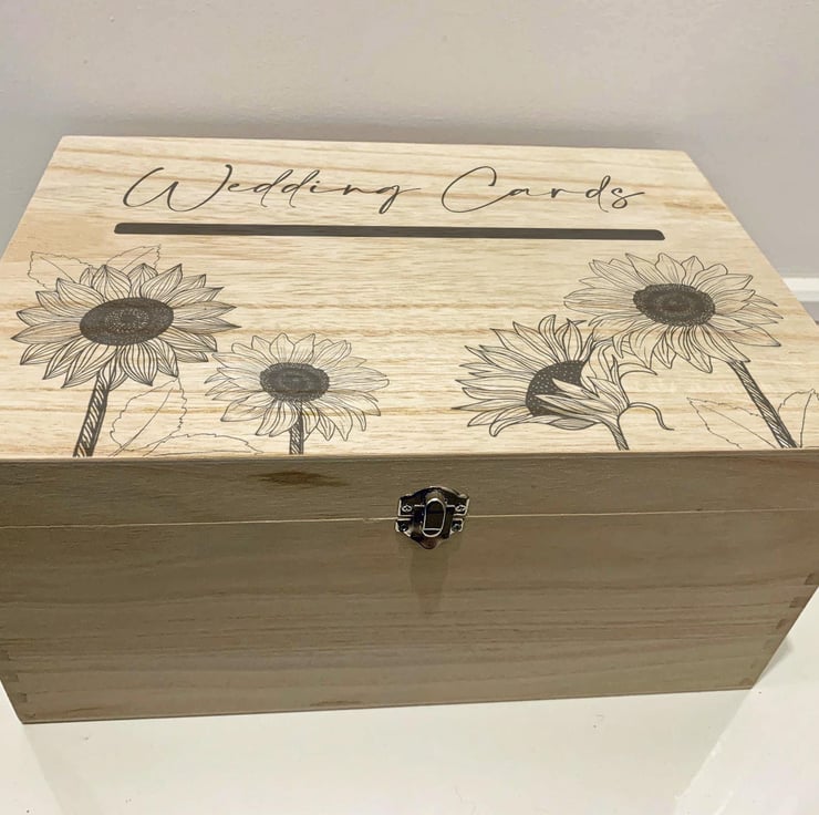 Large Personalised Engraved Wooden Wedding Card Post Box with Sunflowers