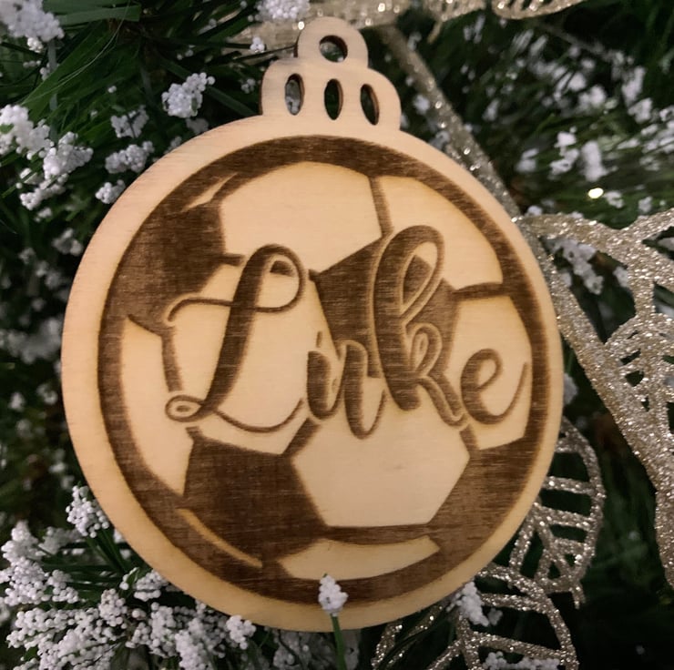Personalised Wooden Football Christmas Bauble