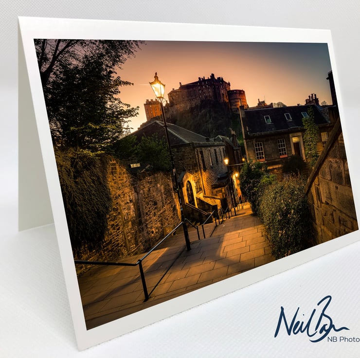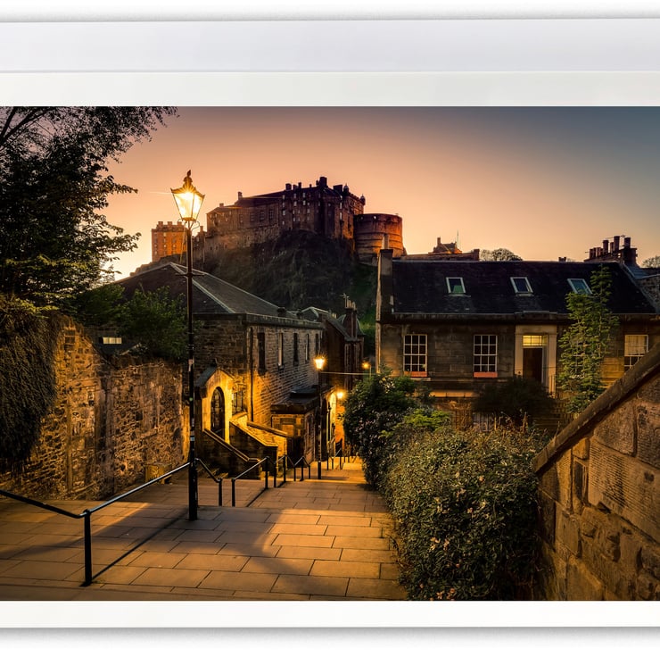 Image: "The Vennel" - Edinburgh Castle and The Vennel, Edinburgh at dusk, 13 May 2018 - by Scotland photographer Neil Barr