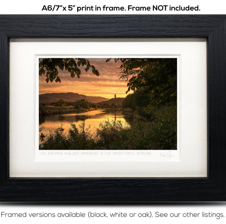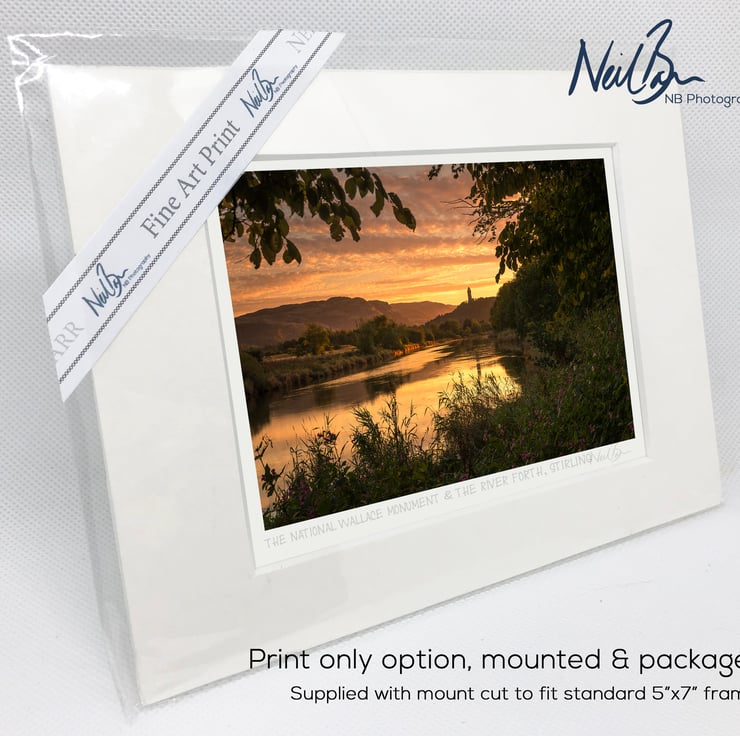 Supplied already mounted, wrapped & with signed labels & certificate, the image is printed on A6 size fine art paper (148x105mm). The actual image size is smaller (see listing images for sizes - image approx. 115x77mm) to allow for the signature & inscription. The 100% acid-free mount is cut to fit standard ready-made frames from high street stores. EXTERNAL mount size is 7"x5". This is the OUTSIDE size of the mount (and thus the size your frame should be).