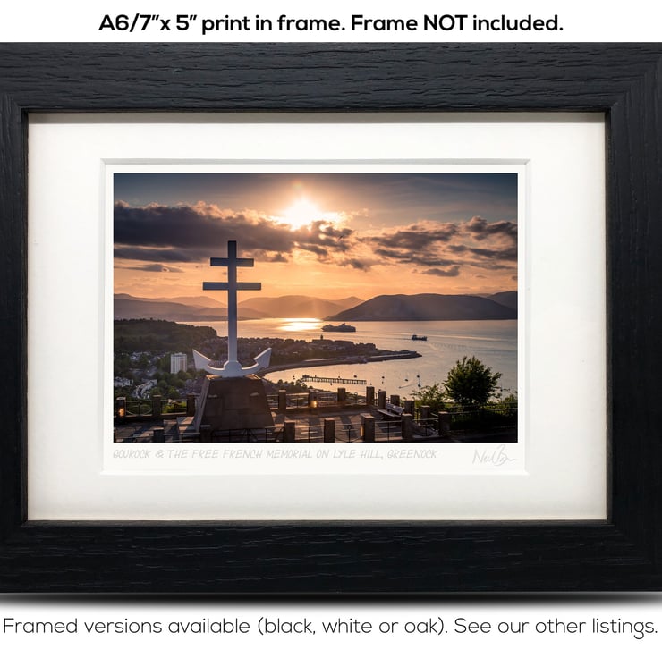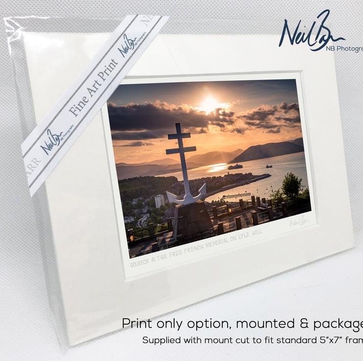 Supplied already mounted, wrapped & with signed labels & certificate, the image is printed on A6 size fine art paper (148x105mm). The actual image size is smaller (see listing images for sizes - image approx. 115x77mm) to allow for the signature & inscription. The 100% acid-free mount is cut to fit standard ready-made frames from high street stores. EXTERNAL mount size is 7"x5". This is the OUTSIDE size of the mount (and thus the size your frame should be).