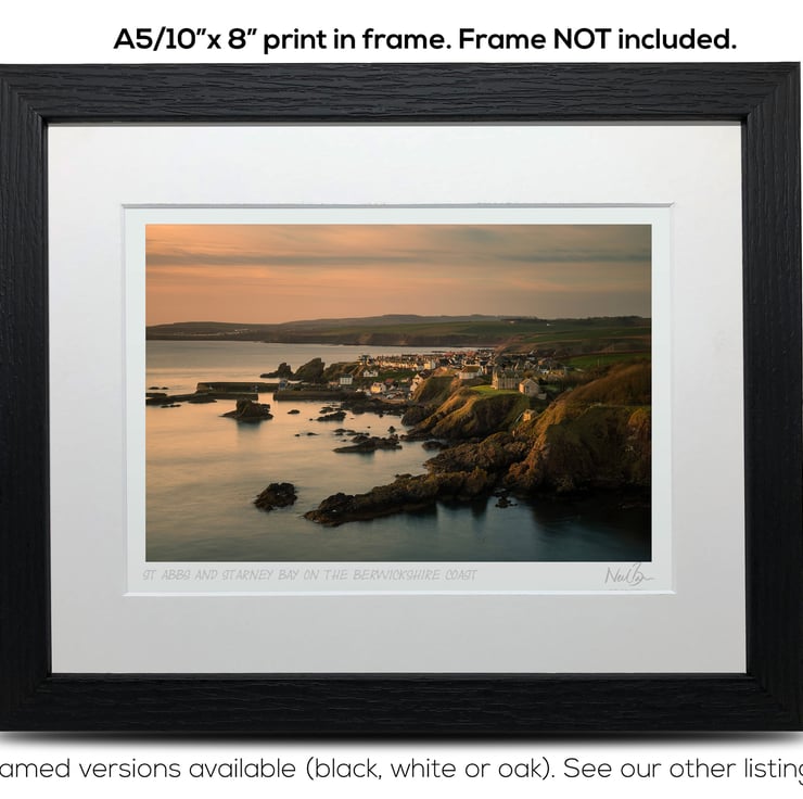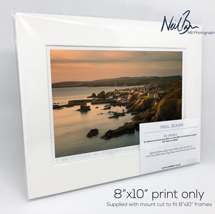 Supplied already mounted, wrapped & with signed labels & certificate, the image is printed on A5 size fine art paper (148x210mm). The actual image size is smaller (see listing images for sizes - image approx. 185x123mm) to allow for the signature & inscription. The 100% acid-free mount is cut to fit standard ready-made frames from high street stores. EXTERNAL mount size is 10"x8". This is the OUTSIDE size of the mount (and thus the size your frame should be).