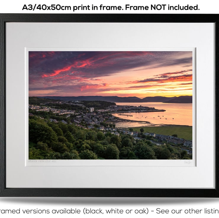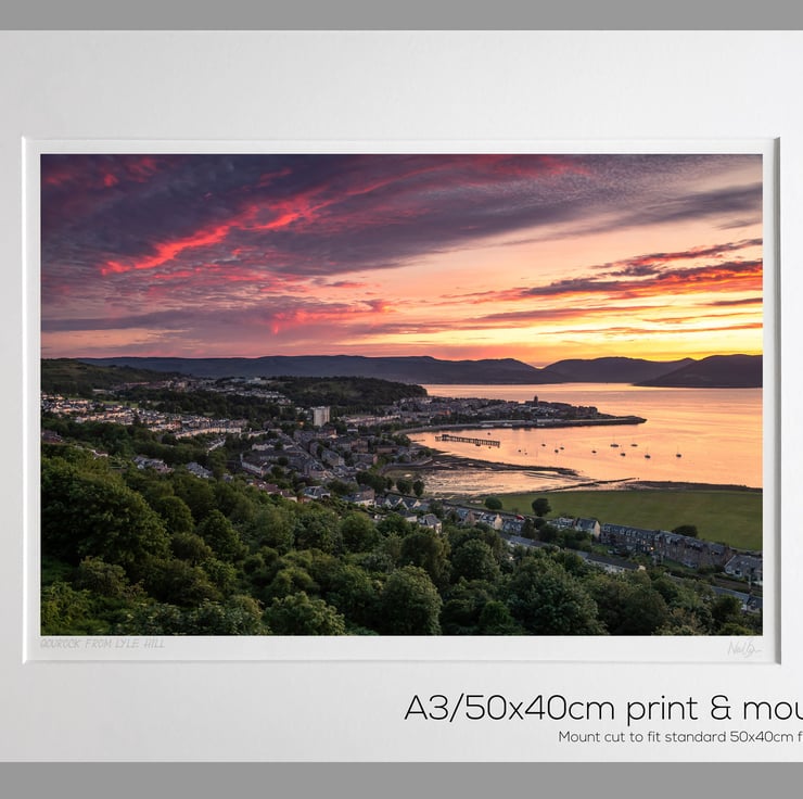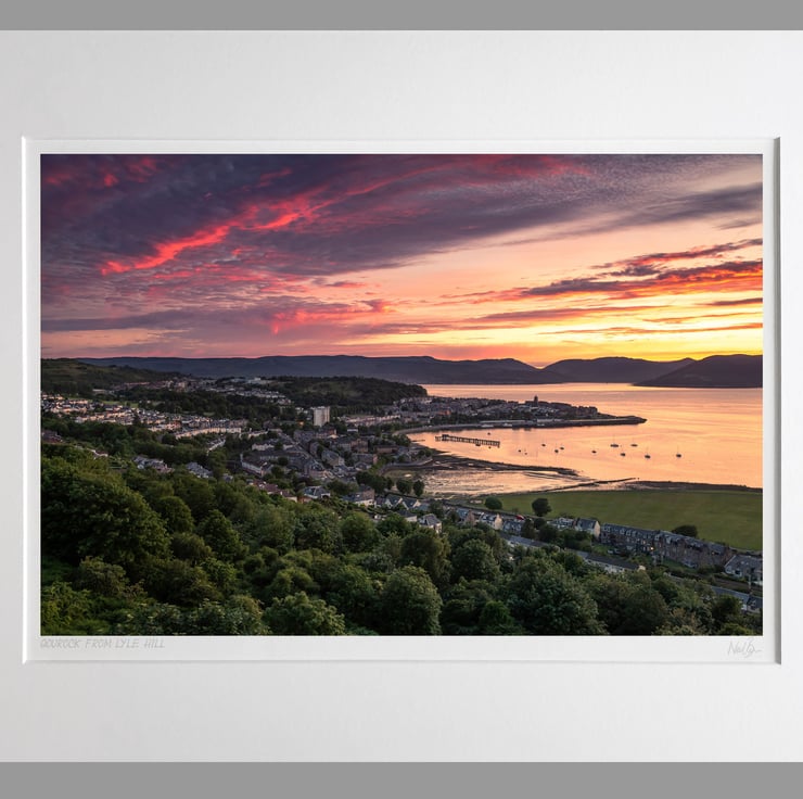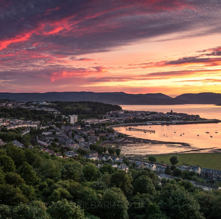 Image: "Gourock" - Gourock, Gourock Bay and the Firth of Clyde at sunset from Lyle Hill, 24 June 2020 - by Scotland photographer Neil Barr