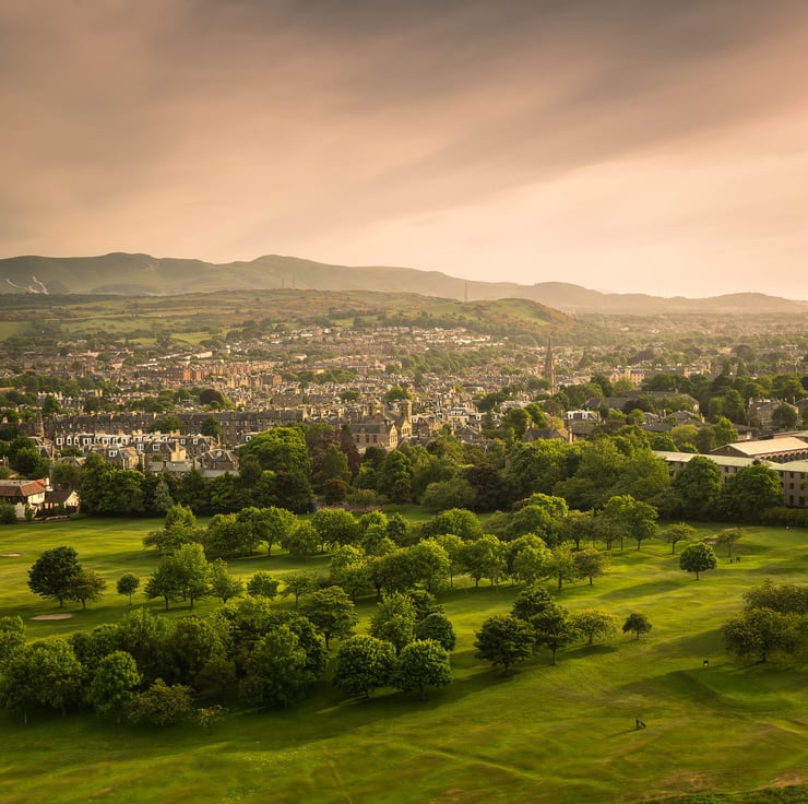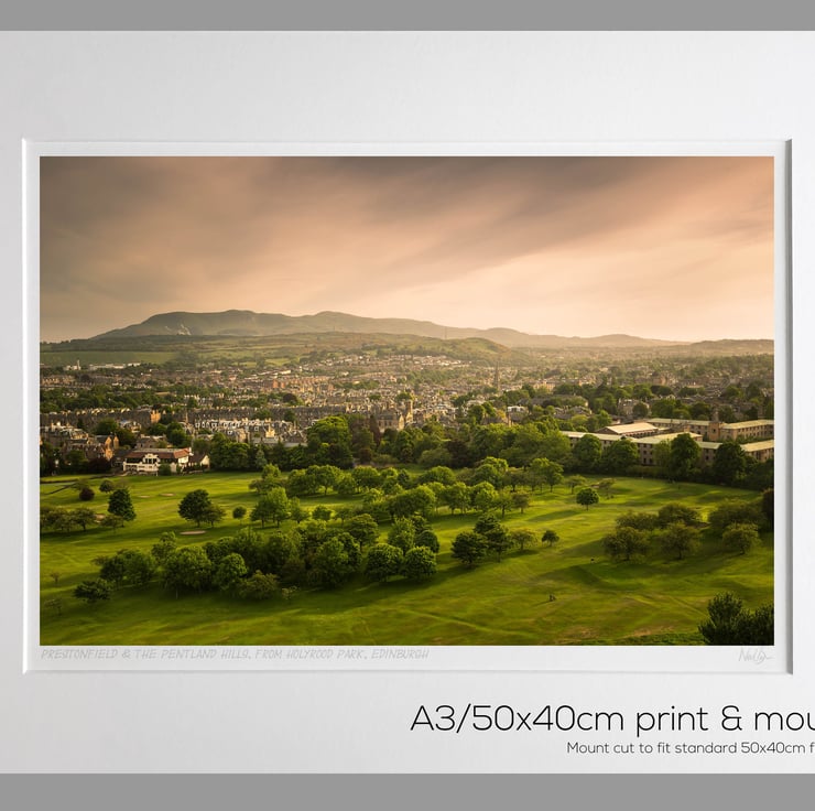 Image: "Prestonfield" - Prestonfield Golf Course & south Edinburgh towards the Pentland Hills, from Holyrood Park, 5 June 2018 - by Scotland photographer Neil Barr