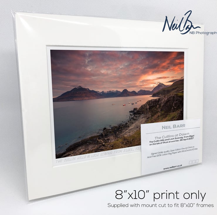 Image: "The Cuillins at Dawn" - The Cuillin Hills and Loch Scavaig, from Elgol on the Isle of Skye at sunrise, 28 April 2017 - by Scotland photographer Neil Barr