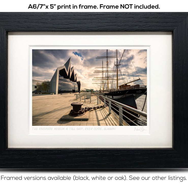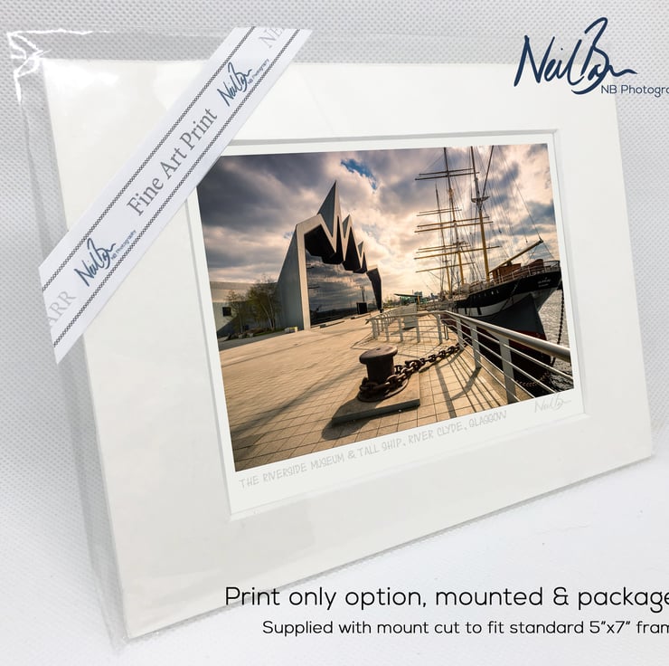 Supplied already mounted, wrapped & with signed labels & certificate, the image is printed on A6 size fine art paper (148x105mm). The actual image size is smaller (see listing images for sizes - image approx. 115x77mm) to allow for the signature & inscription. The 100% acid-free mount is cut to fit standard ready-made frames from high street stores. EXTERNAL mount size is 7"x5". This is the OUTSIDE size of the mount (and thus the size your frame should be).