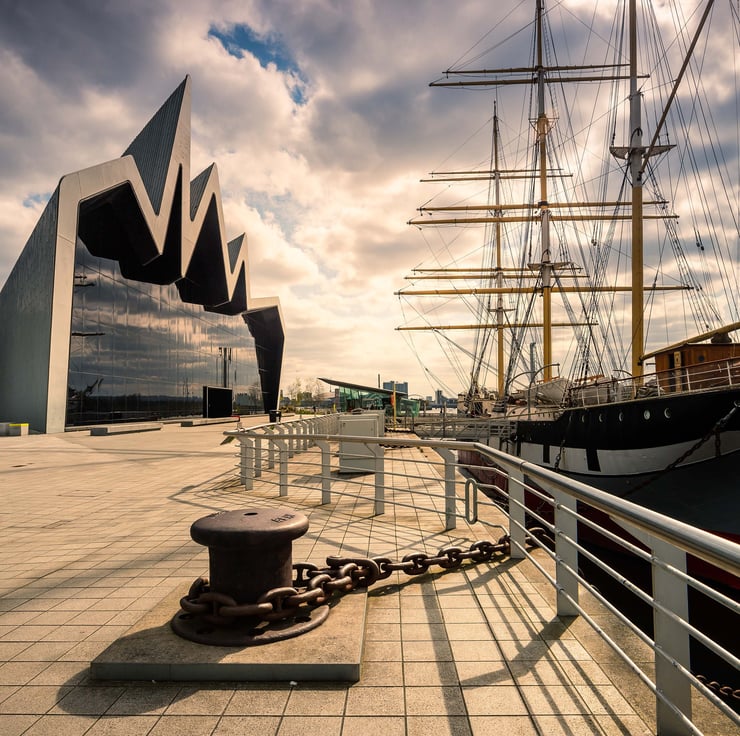 Image: "Riverside" - The Riverside Museum and Tall Ship (Glenlee), by the River Clyde in Glasgow, 14 April 2019 - by Scotland photographer Neil Barr