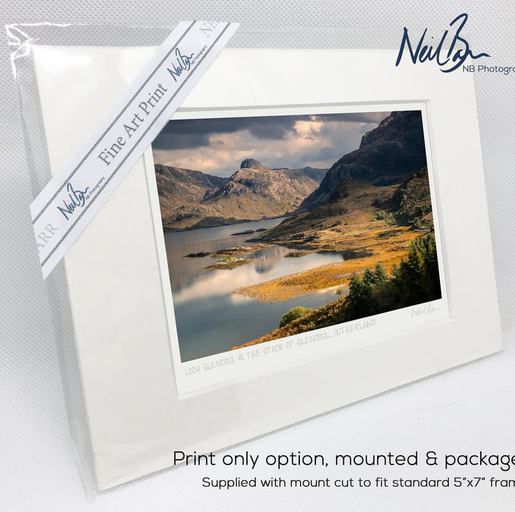 Supplied already mounted, wrapped & with signed labels & certificate, the image is printed on A6 size fine art paper (148x105mm). The actual image size is smaller (see listing images for sizes - image approx. 115x77mm) to allow for the signature & inscription. The 100% acid-free mount is cut to fit standard ready-made frames from high street stores. EXTERNAL mount size is 7"x5". This is the OUTSIDE size of the mount (and thus the size your frame should be).
