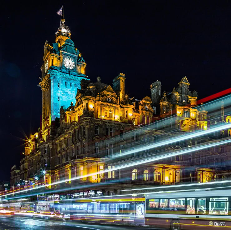 Image: "Balmoral Hotel" - The Balmoral Hotel, Princes Street, Edinburgh at night, 18 December 2014 - by Scotland photographer Neil Barr