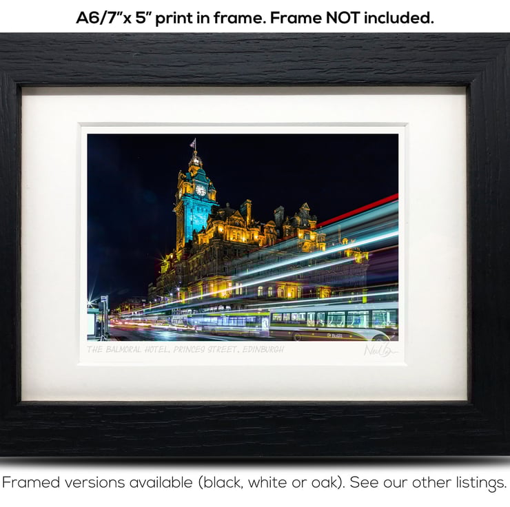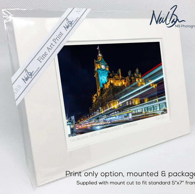 Supplied already mounted, wrapped & with signed labels & certificate, the image is printed on A6 size fine art paper (148x105mm). The actual image size is smaller (see listing images for sizes - image approx. 115x77mm) to allow for the signature & inscription. The 100% acid-free mount is cut to fit standard ready-made frames from high street stores. EXTERNAL mount size is 7"x5". This is the OUTSIDE size of the mount (and thus the size your frame should be).