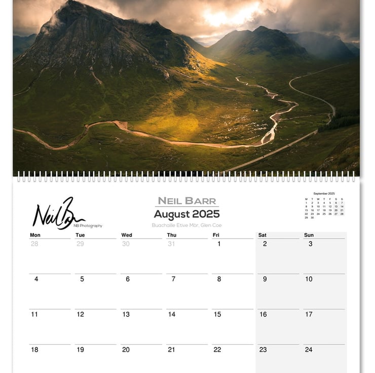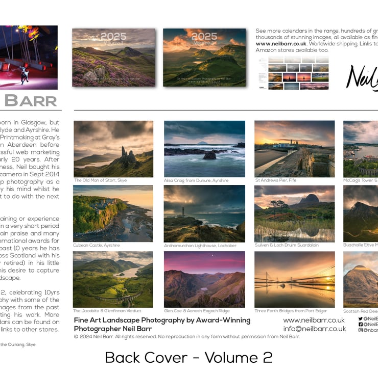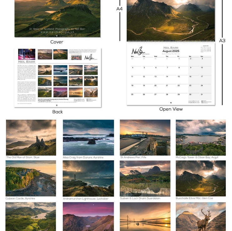 2025 Scotland Calendar celebrating 10 years of photography by Scottish landscape photographer Neil Barr.