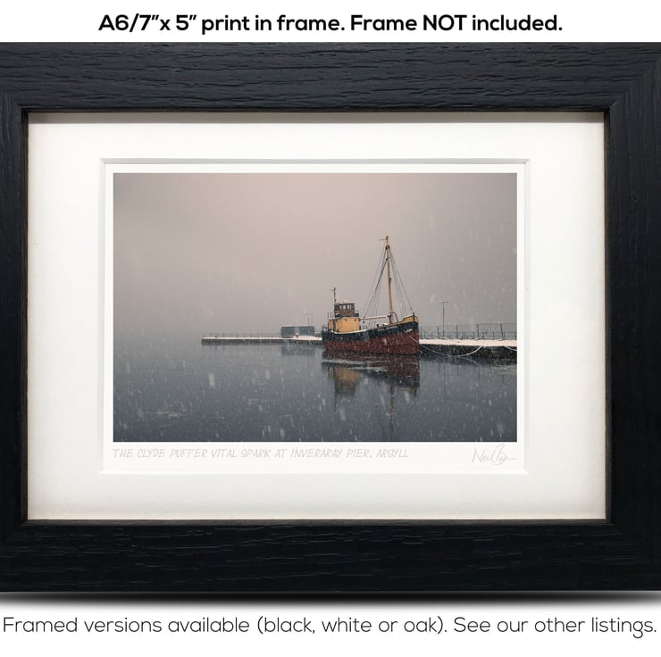 Image: "Vital Spark" - The Clyde puffer Vital Spark at Inveraray pier on a snowy day, 23 January 2019 - by Scotland photographer Neil Barr