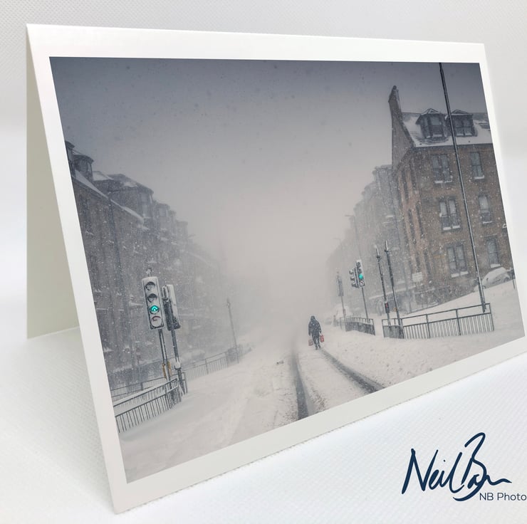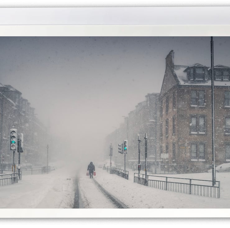 Image: "Gettin' The Messages" - Nelson Street in Greenock during a blizzard, 1 March 2018 - by Scotland photographer Neil Barr