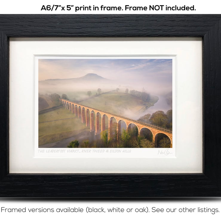 Supplied already mounted, wrapped & with signed labels & certificate, the image is printed on A6 size fine art paper (148x105mm). The actual image size is smaller (see listing images for sizes - image approx. 115x77mm) to allow for the signature & inscription. The 100% acid-free mount is cut to fit standard ready-made frames from high street stores. EXTERNAL mount size is 7"x5". This is the OUTSIDE size of the mount (and thus the size your frame should be).