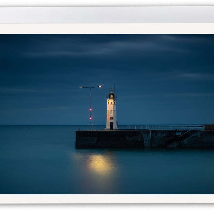 Image: "Leave A Light On" - Chalmers Lighthouse on the West Breakwater of Anstruther Easter Harbour, in the East Neuk of Fife at dusk, 29 March 2019 - by Scotland photographer Neil Barr