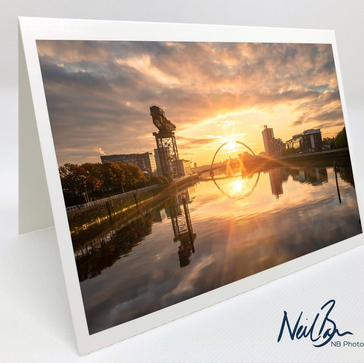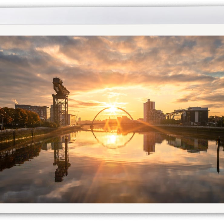 Image: "Double Dawn" - The morning sun rising over the River Clyde and the Clyde Arc, Glasgow, 21 October 2019 - by Scotland photographer Neil Barr