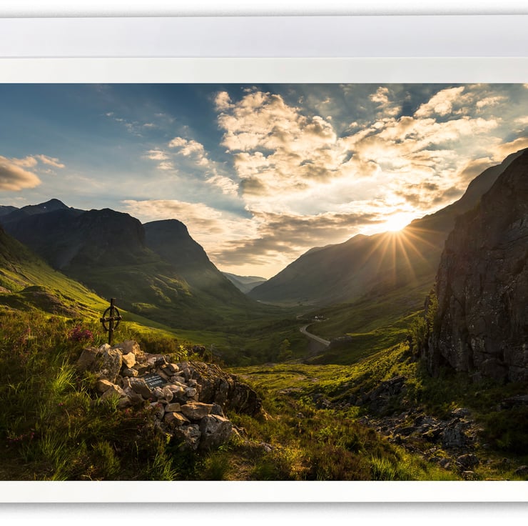 Image: "These Are My Mountains" - Glen Coe and the Ralston Memorial at sunset, 2 July 2018 - by Scotland photographer Neil Barr