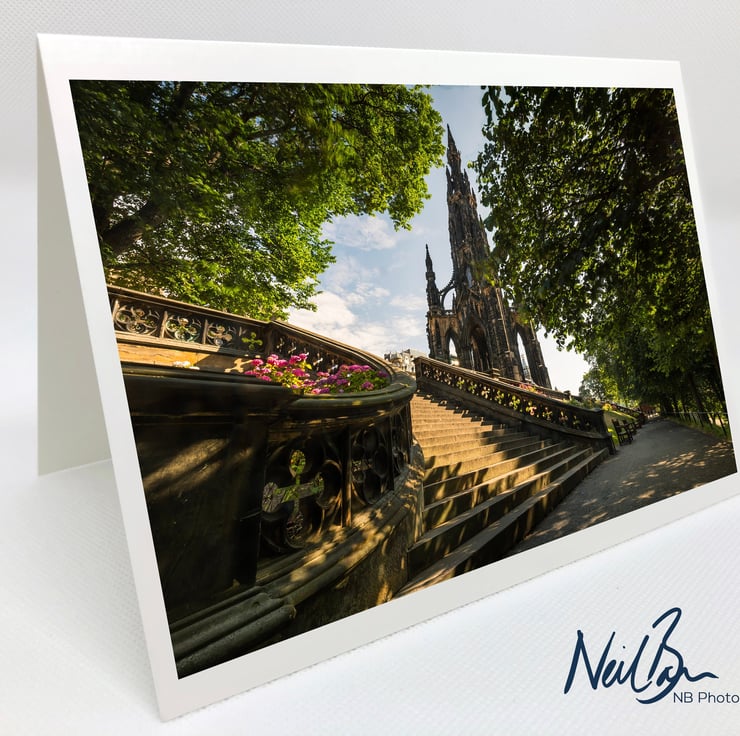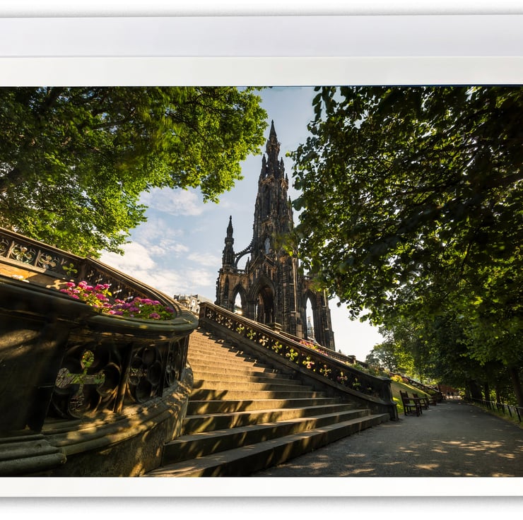 Image: "The Scott Monument" - The Scott Monument from Princes Street Gardens East, Edinburgh on a sunny morning, 19 July 2018 - by Scotland photographer Neil Barr