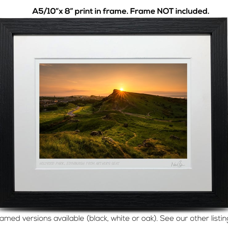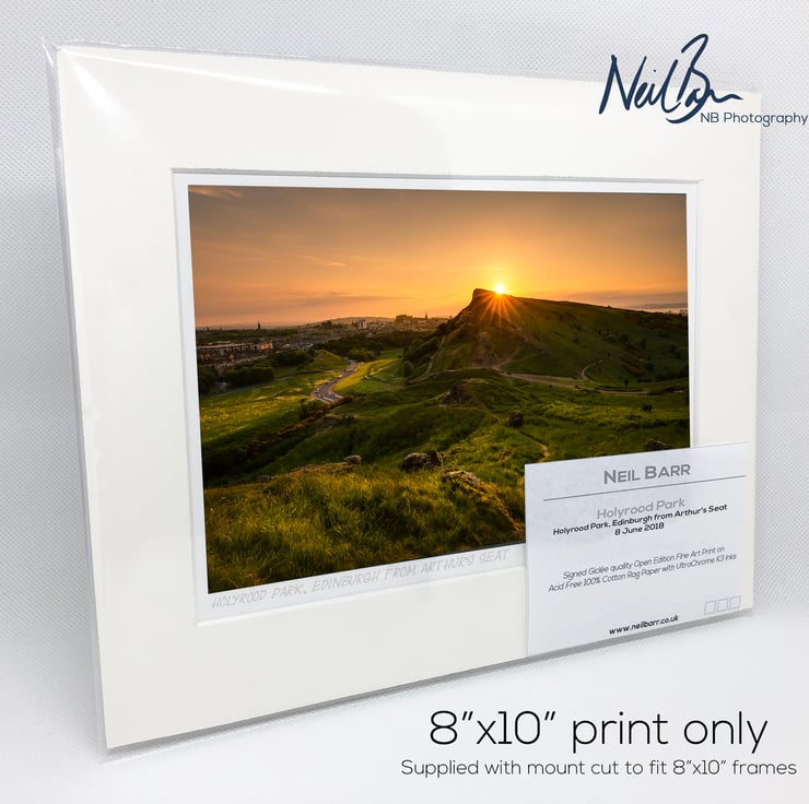 Supplied already mounted, wrapped & with signed labels & certificate, the image is printed on A5 size fine art paper (148x210mm). The actual image size is smaller (see listing images for sizes - image approx. 185x123mm) to allow for the signature & inscription. The 100% acid-free mount is cut to fit standard ready-made frames from high street stores. EXTERNAL mount size is 10"x8". This is the OUTSIDE size of the mount (and thus the size your frame should be).