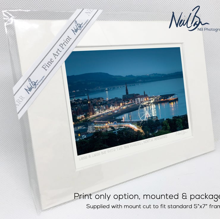 Supplied already mounted, wrapped & with signed labels & certificate, the image is printed on A6 size fine art paper (148x105mm). The actual image size is smaller (see listing images for sizes - image approx. 115x77mm) to allow for the signature & inscription. The 100% acid-free mount is cut to fit standard ready-made frames from high street stores. EXTERNAL mount size is 7"x5". This is the OUTSIDE size of the mount (and thus the size your frame should be).