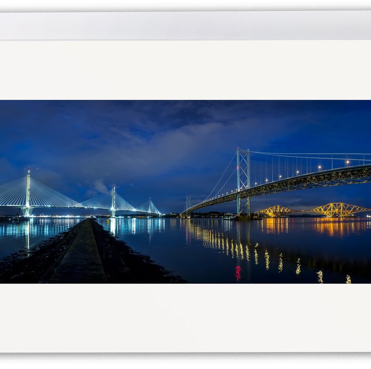 Image: "The Three Bridges" - The new Queensferry Crossing, The Forth Road Bridge and the Forth Bridge across the River Forth, from Port Edgar, 6 March 2017 - by Scotland photographer Neil Barr