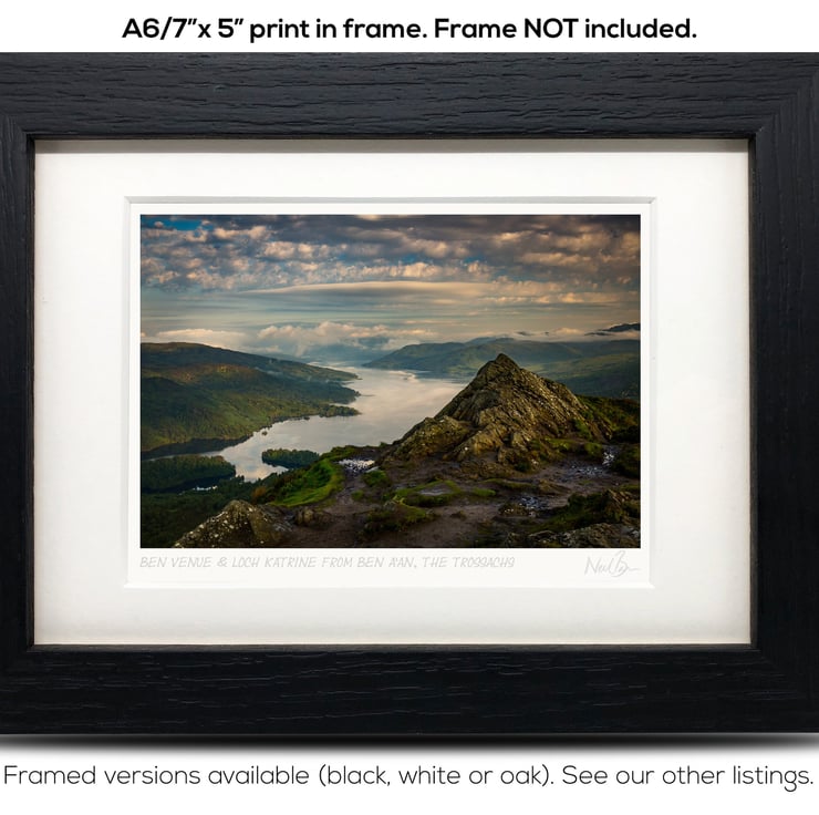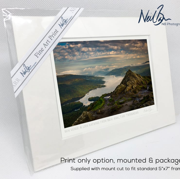 Supplied already mounted, wrapped & with signed labels & certificate, the image is printed on A6 size fine art paper (148x105mm). The actual image size is smaller (see listing images for sizes - image approx. 115x77mm) to allow for the signature & inscription. The 100% acid-free mount is cut to fit standard ready-made frames from high street stores. EXTERNAL mount size is 7"x5". This is the OUTSIDE size of the mount (and thus the size your frame should be).