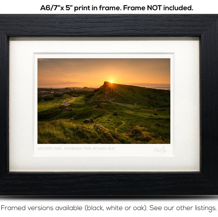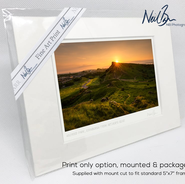 Supplied already mounted, wrapped & with signed labels & certificate, the image is printed on A6 size fine art paper (148x105mm). The actual image size is smaller (see listing images for sizes - image approx. 115x77mm) to allow for the signature & inscription. The 100% acid-free mount is cut to fit standard ready-made frames from high street stores. EXTERNAL mount size is 7"x5". This is the OUTSIDE size of the mount (and thus the size your frame should be).