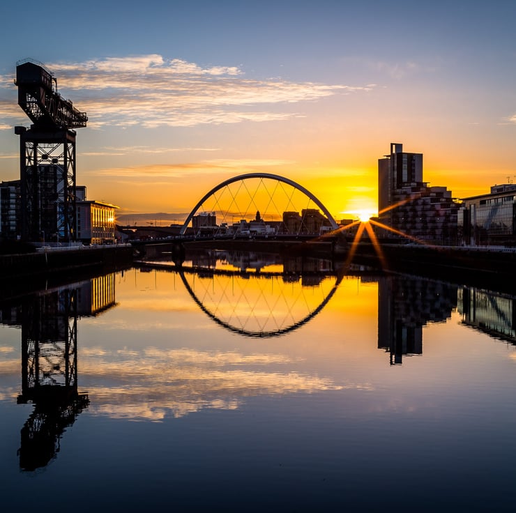 Image: "Glasgow Sunrise" - Dawn over the Clyde Arc and River Clyde on a still morning, 4 February 2015 - by Scotland photographer Neil Barr