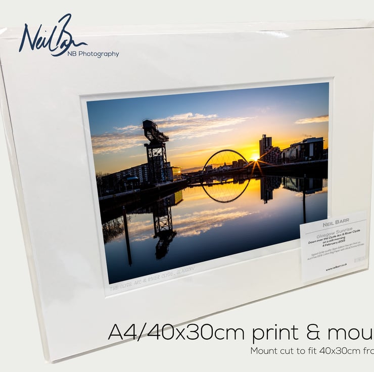 Supplied already mounted, wrapped & with signed labels & certificate, the image is printed on A4 size fine art paper (210x297mm). The actual image size is smaller (see listing images for sizes) to allow for the signature & inscription. The 100% acid-free mount is cut to fit standard ready-made frames from high street stores. EXTERNAL mount size is 40cm x 30cm. This is the OUTSIDE size of the mount (and thus the size your frame should be).