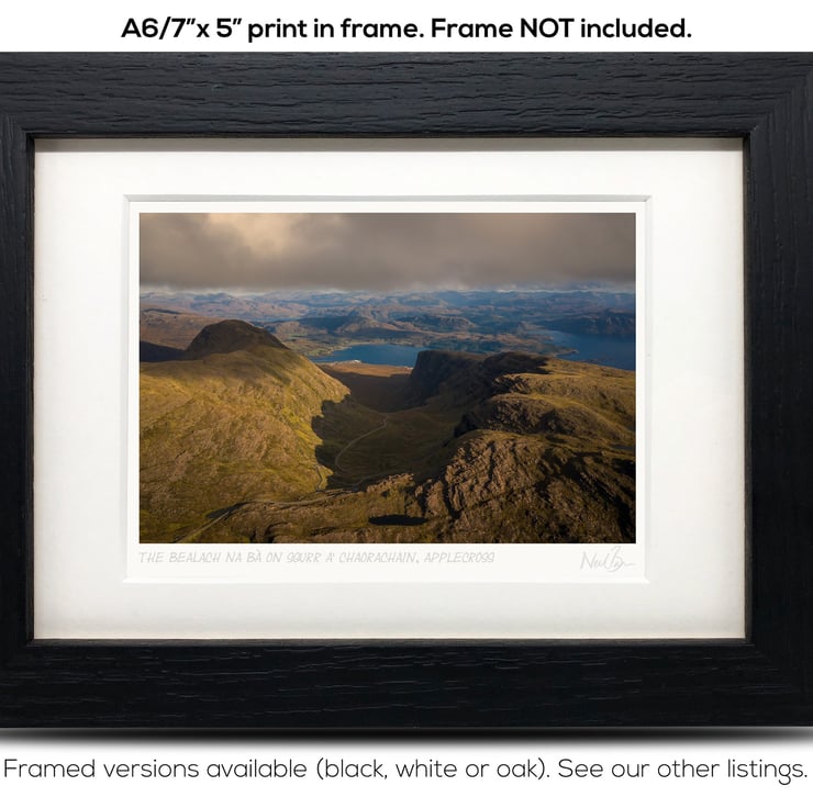 Supplied already mounted, wrapped & with signed labels & certificate, the image is printed on A6 size fine art paper (148x105mm). The actual image size is smaller (see listing images for sizes - image approx. 115x77mm) to allow for the signature & inscription. The 100% acid-free mount is cut to fit standard ready-made frames from high street stores. EXTERNAL mount size is 7"x5". This is the OUTSIDE size of the mount (and thus the size your frame should be).
