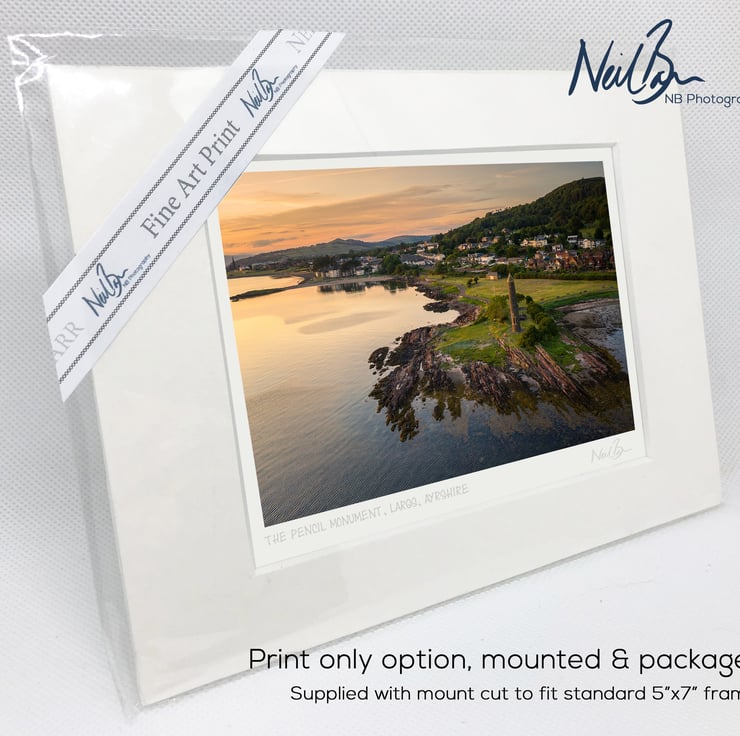 Supplied already mounted, wrapped & with signed labels & certificate, the image is printed on A6 size fine art paper (148x105mm). The actual image size is smaller (see listing images for sizes - image approx. 115x77mm) to allow for the signature & inscription. The 100% acid-free mount is cut to fit standard ready-made frames from high street stores. EXTERNAL mount size is 7"x5". This is the OUTSIDE size of the mount (and thus the size your frame should be).