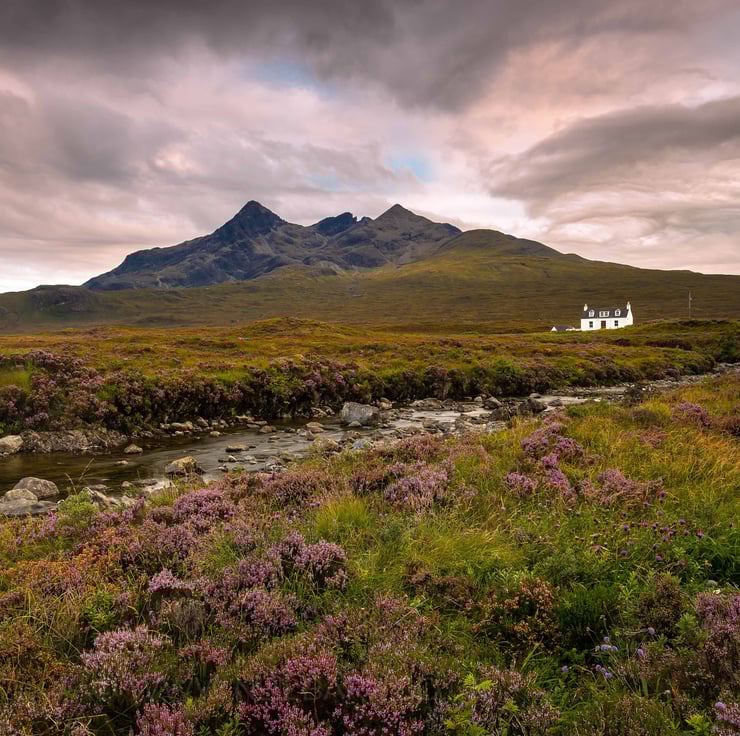 Image: "The Black Cuillin" - The Black Cuillin in the Cuillin Hills, Alltdearg House & Allt Dearg Beag on the Isle of Skye at sunset, 24 August 2020 - by Scotland photographer Neil Barr