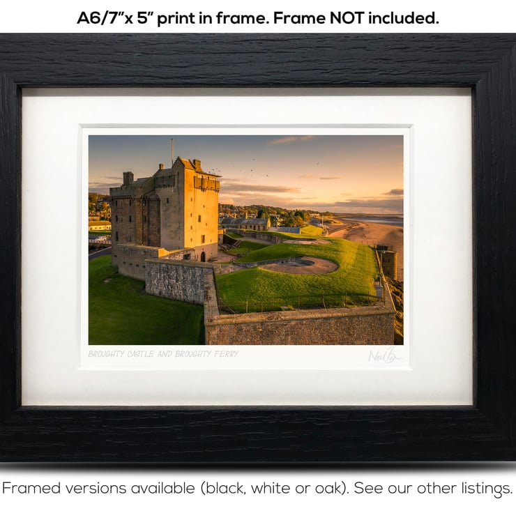 Supplied already mounted, wrapped & with signed labels & certificate, the image is printed on A6 size fine art paper (148x105mm). The actual image size is smaller (see listing images for sizes - image approx. 115x77mm) to allow for the signature & inscription. The 100% acid-free mount is cut to fit standard ready-made frames from high street stores. EXTERNAL mount size is 7"x5". This is the OUTSIDE size of the mount (and thus the size your frame should be).
