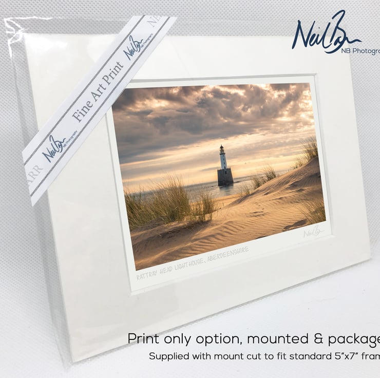Supplied already mounted, wrapped & with signed labels & certificate, the image is printed on A6 size fine art paper (148x105mm). The actual image size is smaller (see listing images for sizes - image approx. 115x77mm) to allow for the signature & inscription. The 100% acid-free mount is cut to fit standard ready-made frames from high street stores. EXTERNAL mount size is 7"x5". This is the OUTSIDE size of the mount (and thus the size your frame should be).